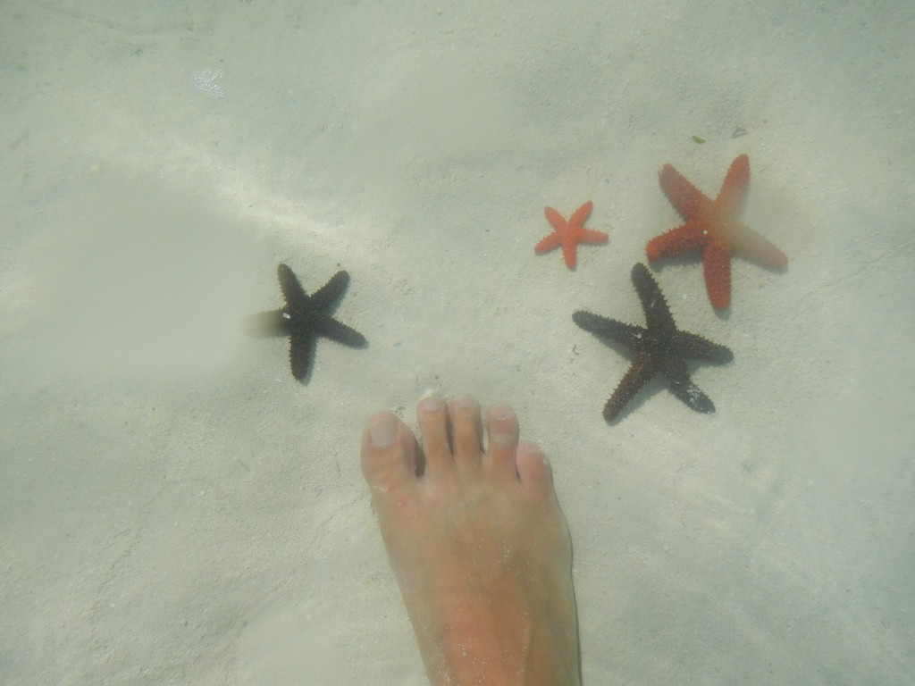 En el puerto, buscamos alguna excursión de snorkel y regateamos hasta conseguir una buena rebaja. Nos llevaron en un barquito hasta una isla privada paradisíaca. En el camino nos mostraron las mansiones de famosos estadounidenses (Tiger Woods, Michael Jordan, Clinton, Oprah, Chuck Norris, etc.) que compraron allí, y después nos recogió otro barquito que nos llevó hasta un lugar especial para hacer snorkel. Estuvo maravilloso, estaba lleno de peces de distintos colores.
